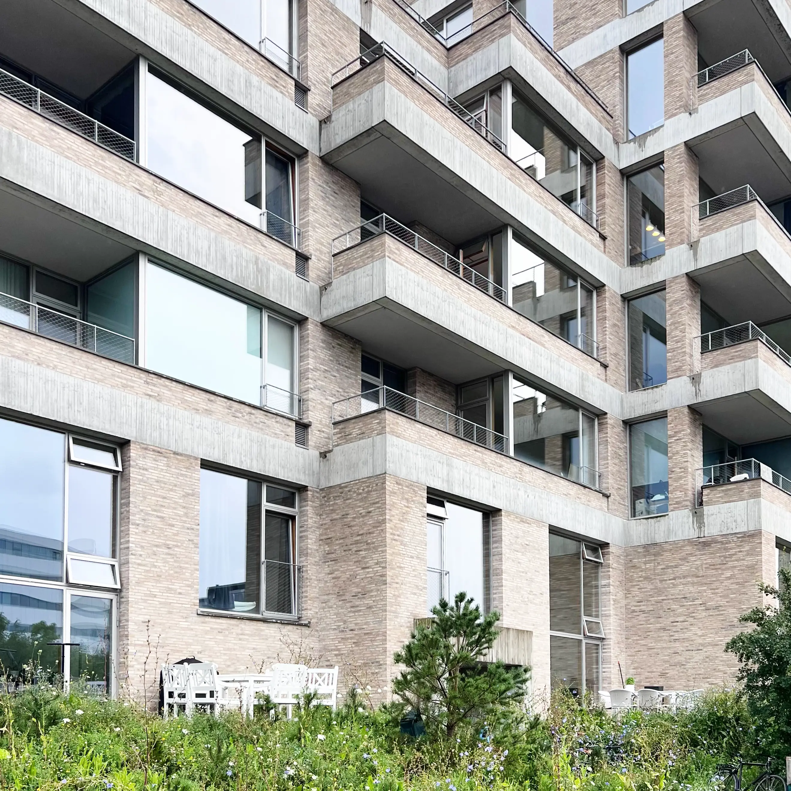 Strolling around on a wet morning in Copenhagen I stumbled across this new housing development with a terrific landscape where the order of priorities seems to be;